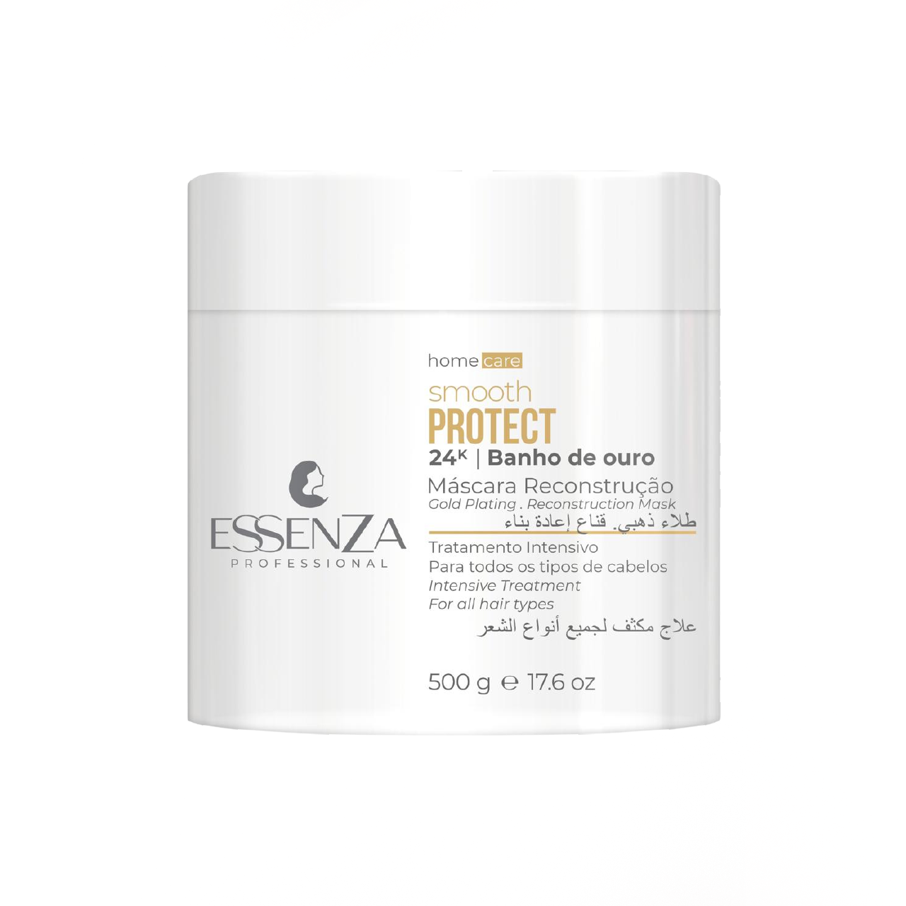 A Máscara de Reconstrução Intensiva Banho de Ouro Essenza Smooth Protect foi desenvolvida para restaurar profundamente os fios danificados, devolvendo força, brilho e maciez desde a primeira aplicação.